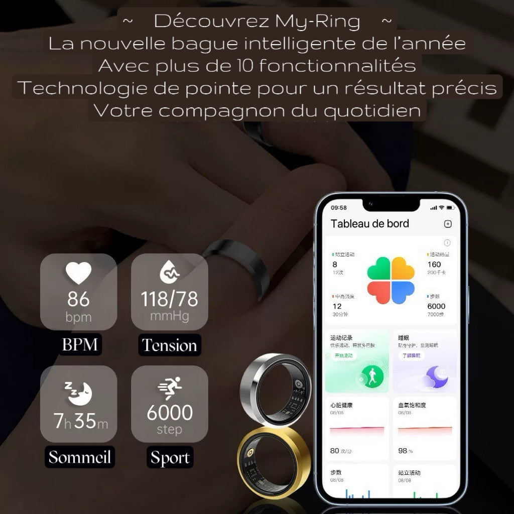 Découvrez My-Ring, la bague intelligente nouvelle génération qui allie élégance, technologie avancée et suivi santé ultra-précis. Conçue pour vous accompagner au quotidien, elle transforme chaque geste en données utiles pour optimiser votre bien-être, votre performance et votre récupération.